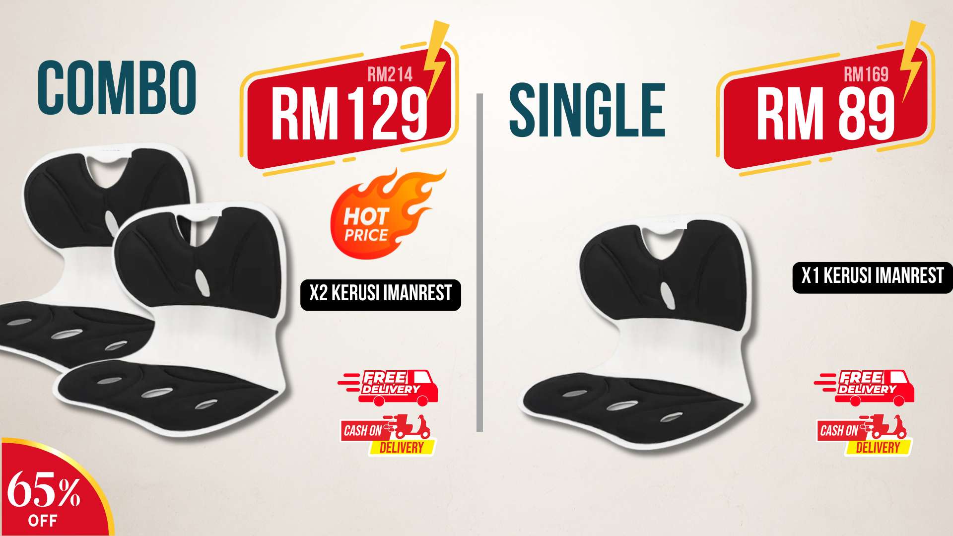 Cuma letakkan kerusi ImanRest di atas sejadah atau lantai rata, kemudian duduk seperti biasa. Ia beri sokongan pada belakang dan kaki supaya tak cepat lenguh. Boleh laras atau lipat bila tak guna, jadi mudah simpan.
